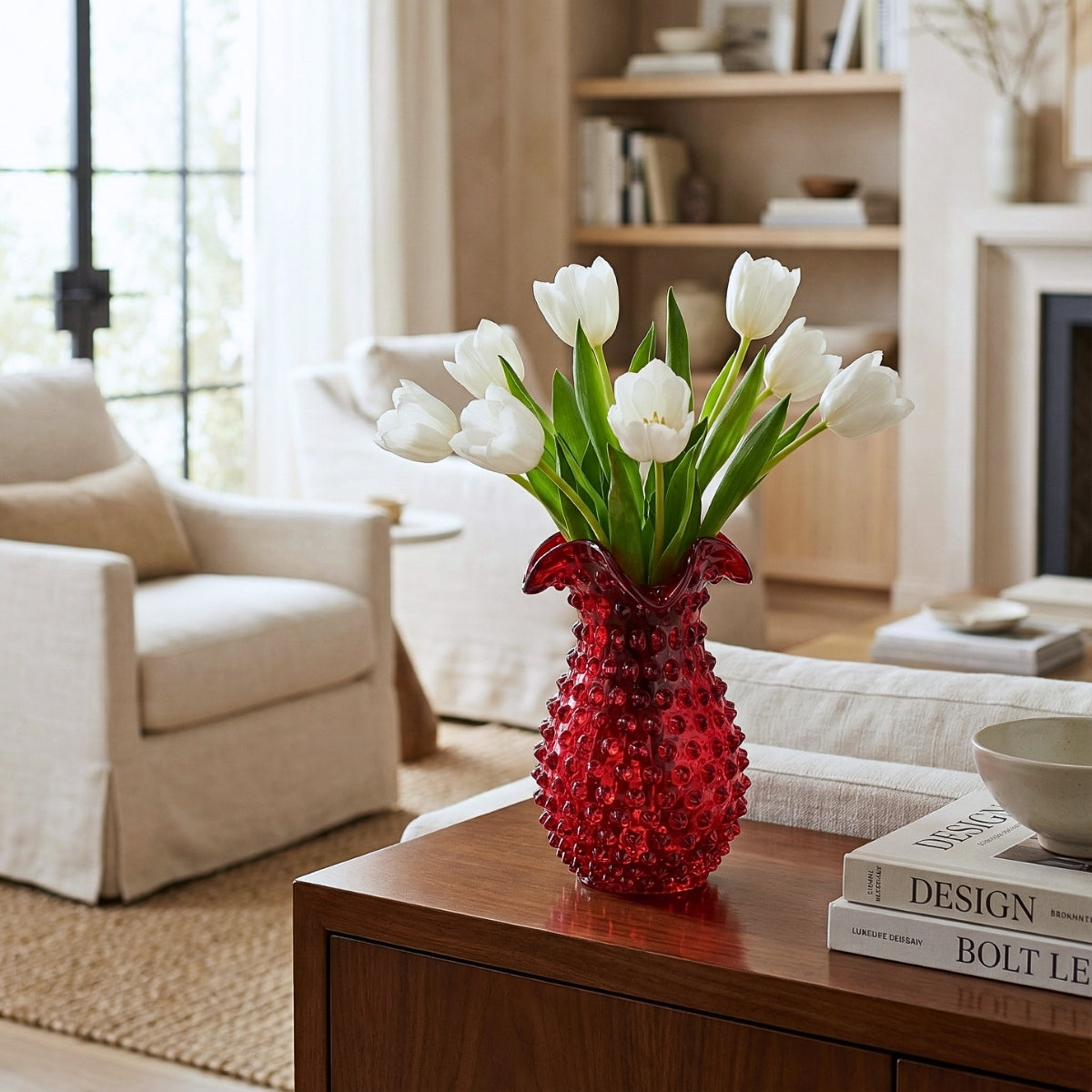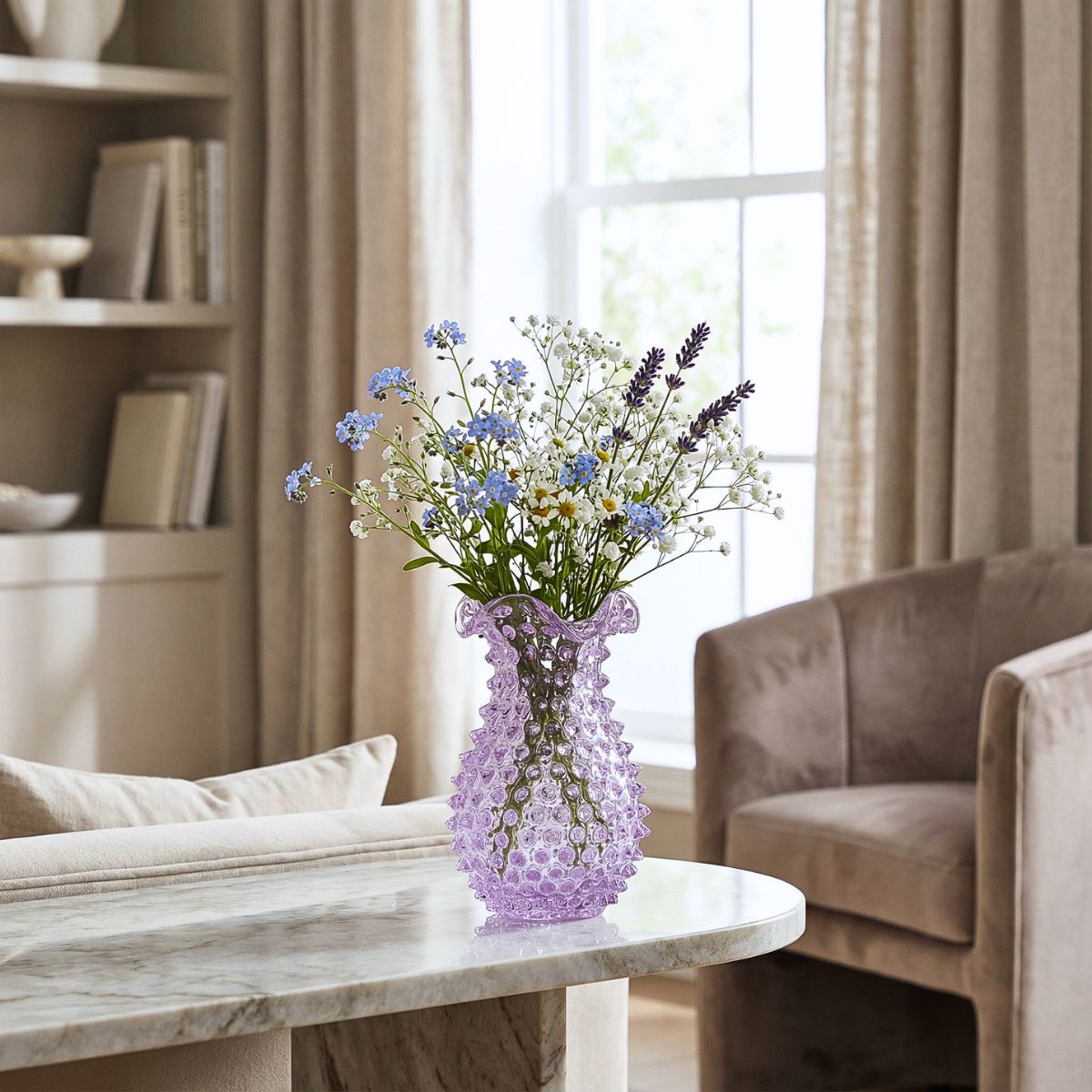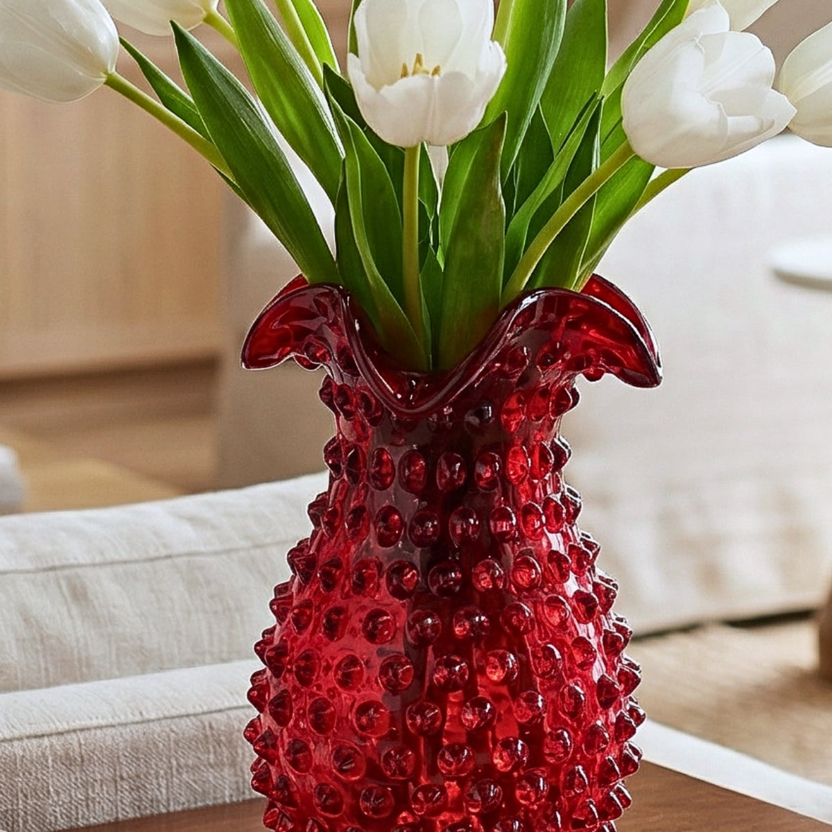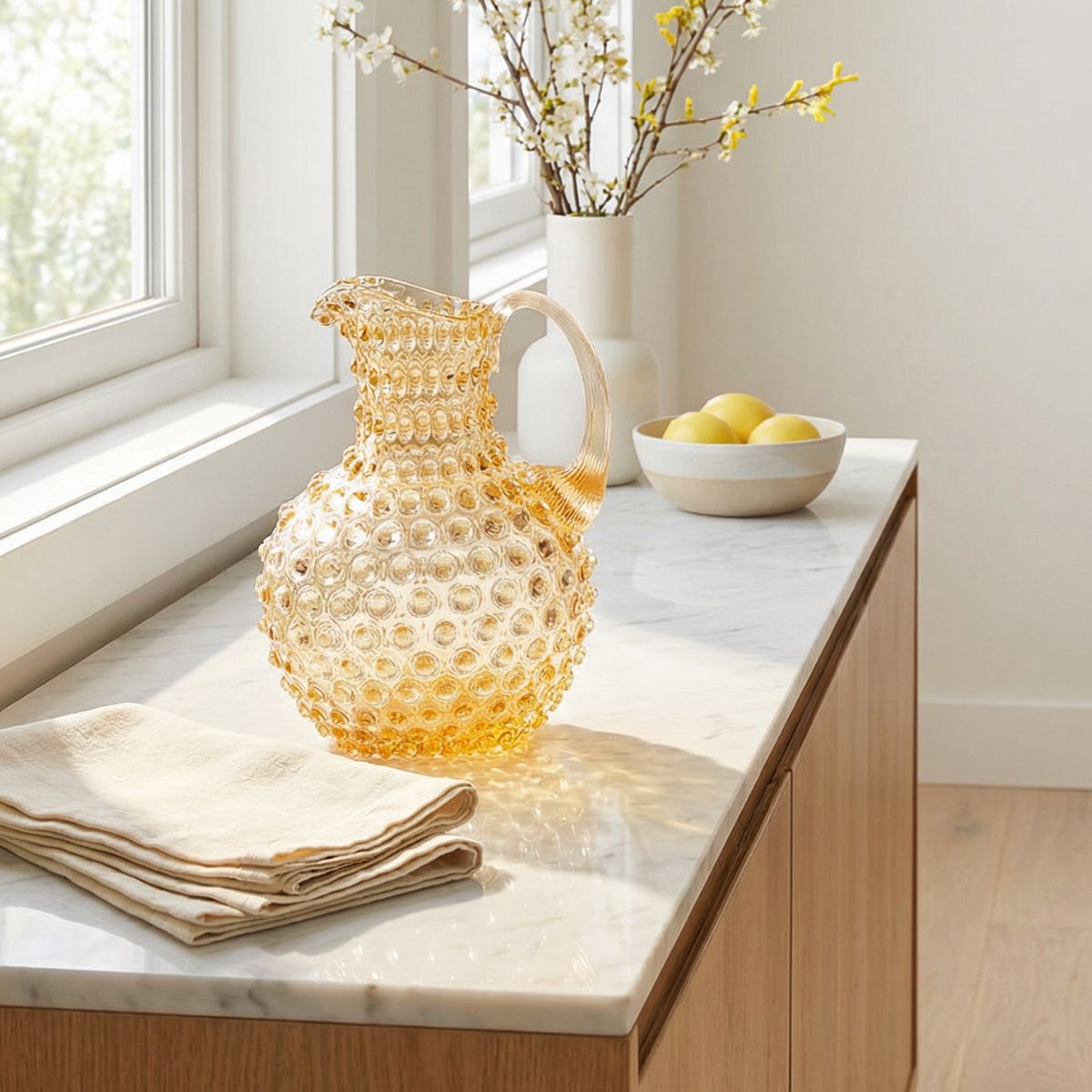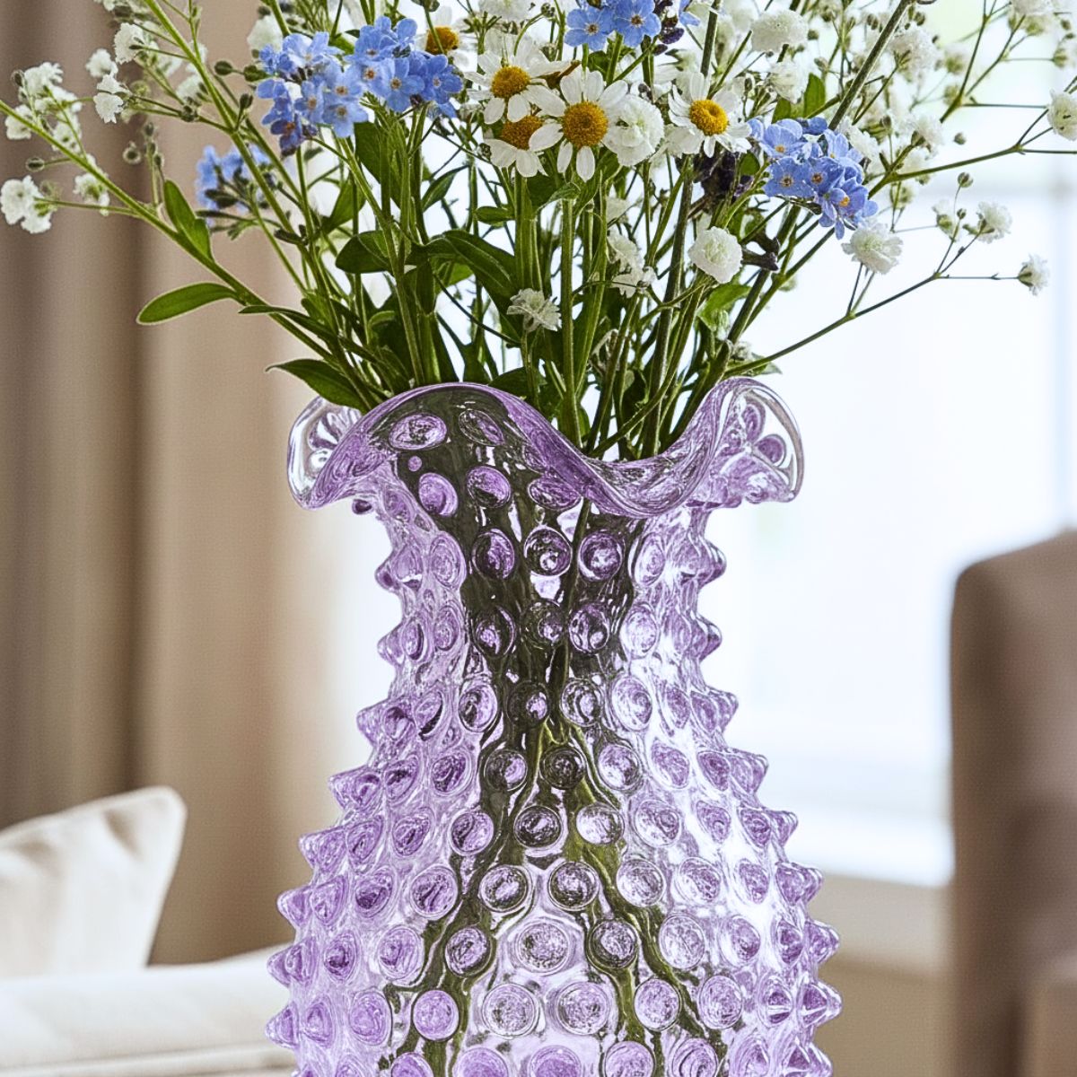 Bring a touch of vintage elegance to modern living with the Hobnail Glass Collection from Maure. Featuring artfully textured surfaces, rich colors, and classic silhouettes, each piece celebrates the beauty of handcrafted design. Style a few on a hallway console or foyer entryway to greet guests with warmth and charm, or cluster them on open shelving for an effortlessly curated look. Whether you're setting a table or searching for a meaningful gift, our hobnail glassware adds character to every corner of your home.