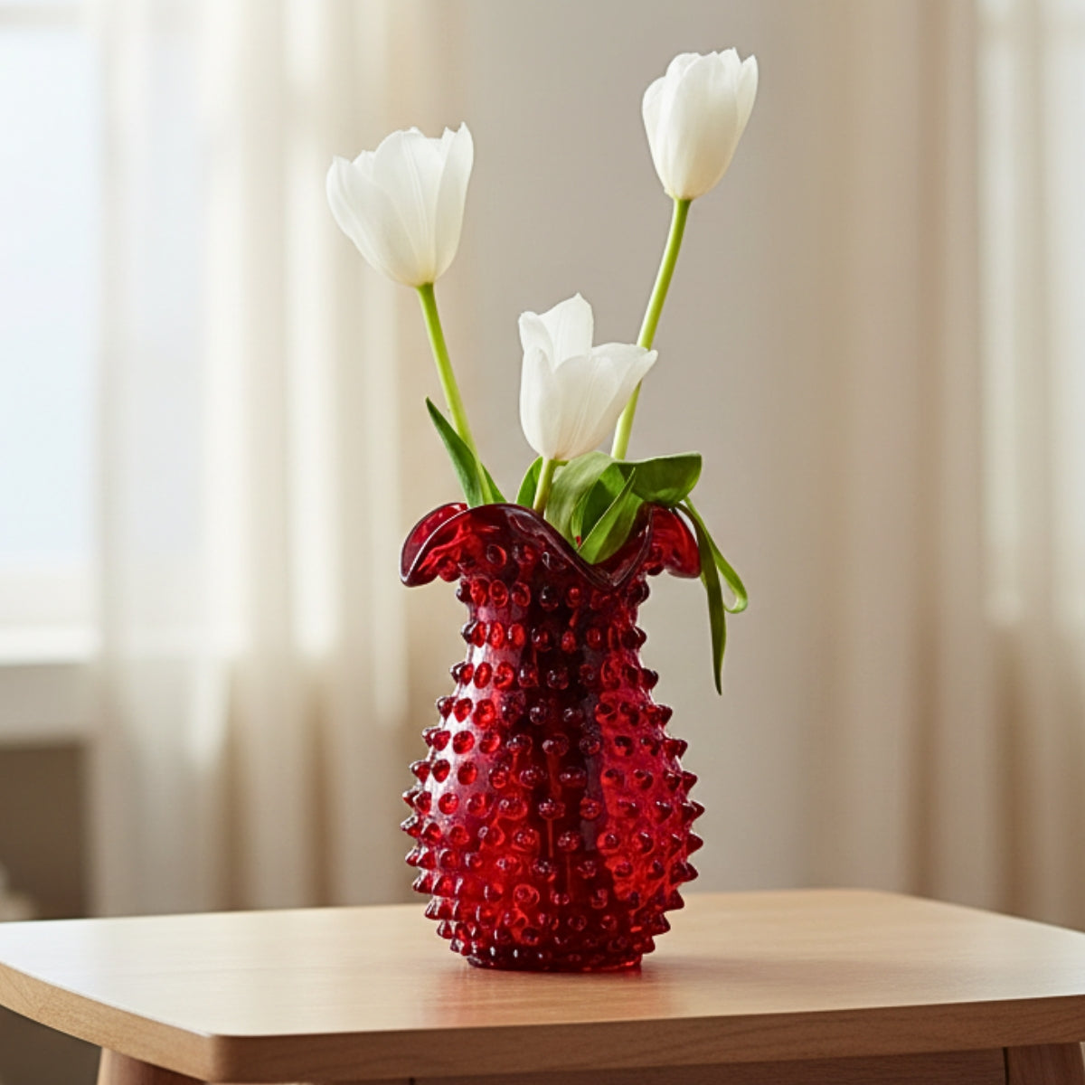 Bring a touch of vintage elegance to modern living with the Hobnail Glass Collection from Maure. Featuring artfully textured surfaces, rich colors, and classic silhouettes, each piece celebrates the beauty of handcrafted design. Style a few on a hallway console or foyer entryway to greet guests with warmth and charm, or cluster them on open shelving for an effortlessly curated look. Whether you're setting a table or searching for a meaningful gift, our hobnail glassware adds character to every corner of your home.