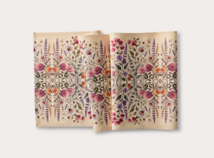 A lively scattering of wildflowers dances across our cheerful print, celebrating the untamed beauty of nature in full bloom.
