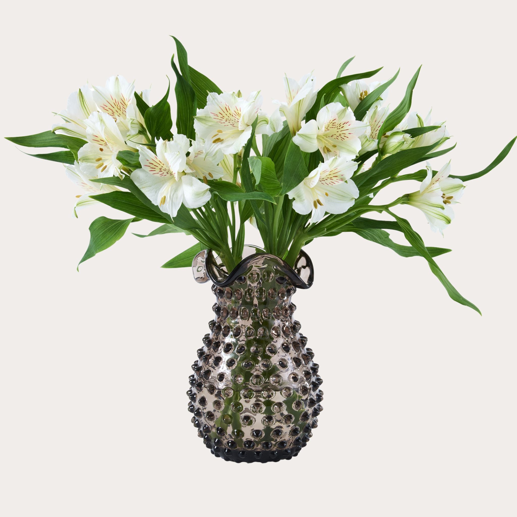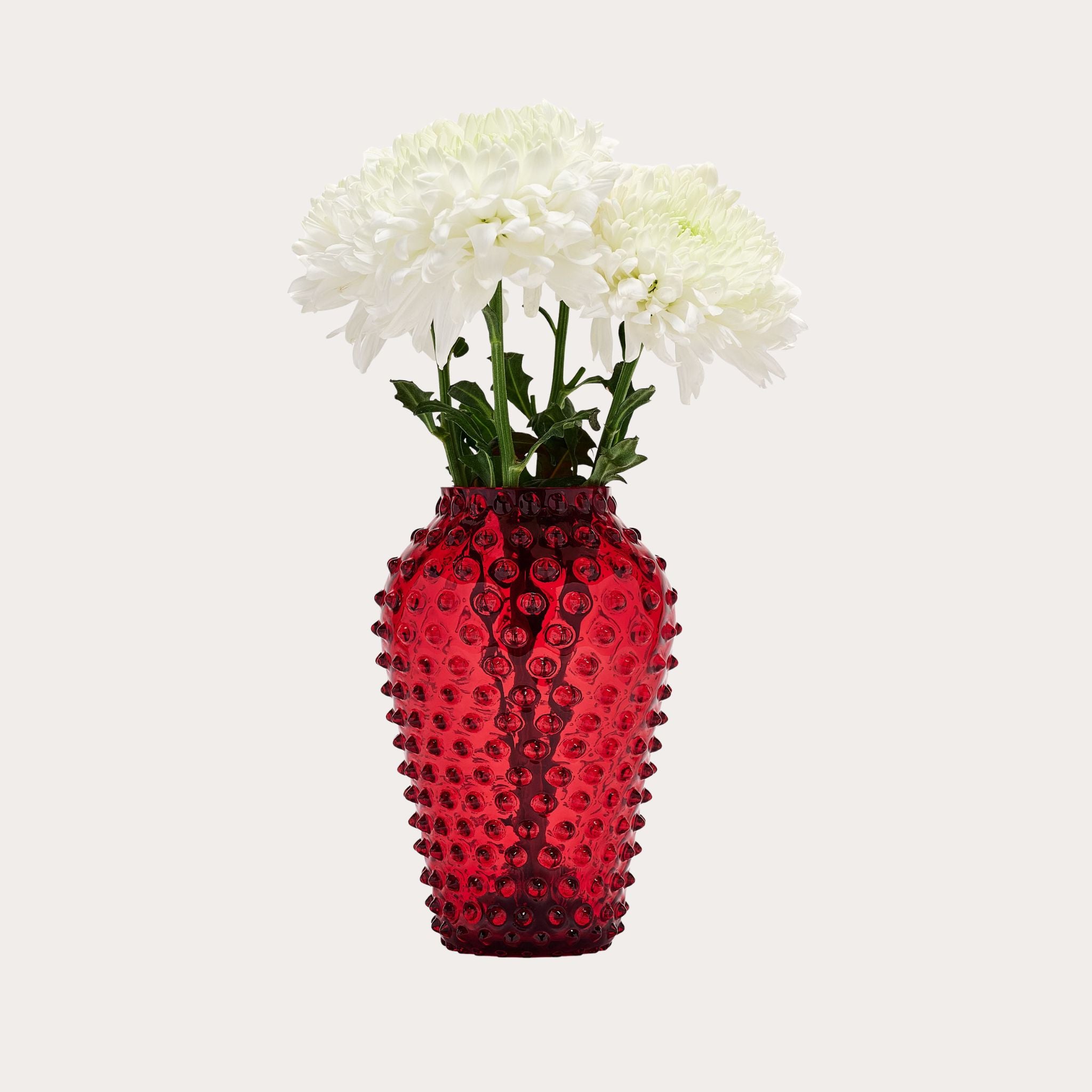 This exquisite hobnail vase exudes timeless elegance with its curved body and petal-like opening, designed for both poise and practicality. This vase is a statement of sophistication and impeccable craftsmanship, tying together various settings to become the ideal gift for homeowners, hosts, and collectors.