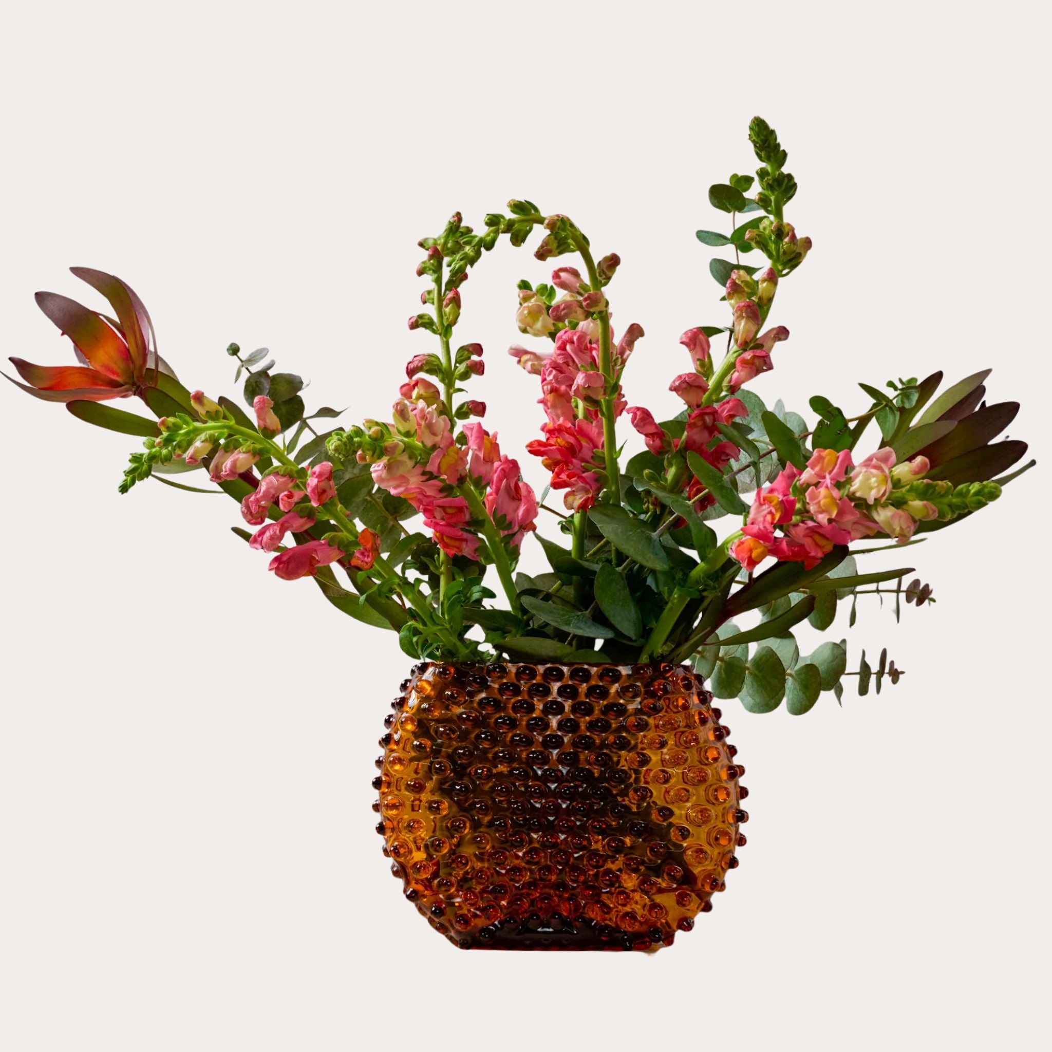 Infuse your space with the enduring beauty of our Hobnail Optic Vase. Meticulously created with intricate texture and graceful form, each piece plays with perspective, featuring a unique optical illusion design. From the front, it appears perfectly round, while from the sides, it narrows elegantly, creating a striking visual gift.