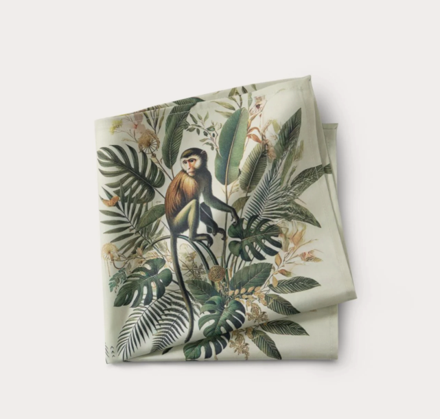 Turn everyday functionality into a vivid masterpiece with the playful elegance of our Monkey print linens and trays. From printed linens to Birchwood trays, this lively pattern adds rich texture and effortless charm to various tablescapes, creating a warm and wild touch for both casual and curated settings.
