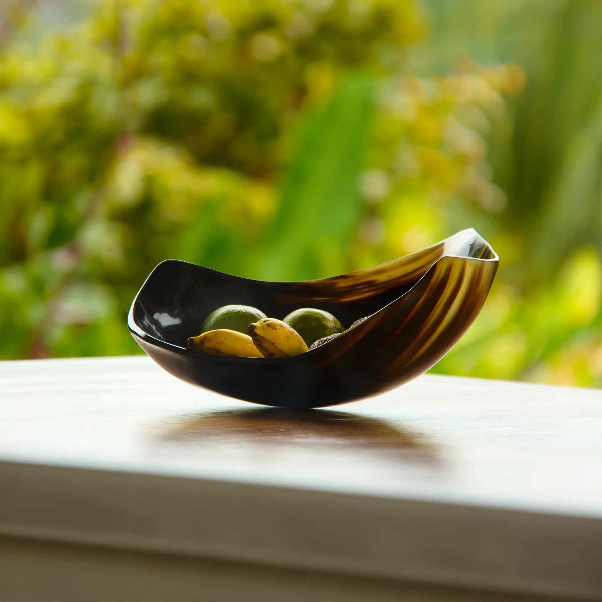 Welcome to the perfect gift for real estate clients. Crafted with respect for ancient traditions, our buffalo horn boat makes a wonderful addition to a set of luxury closing gifts. These one-of-a-kind holders have been carefully crafted by hand from exquisite Indian buffalo horn, giving interior spaces an unrivaled sense of sophistication. Pair it with the bowl, votive, and leather coaters for a cohesive materpiece.