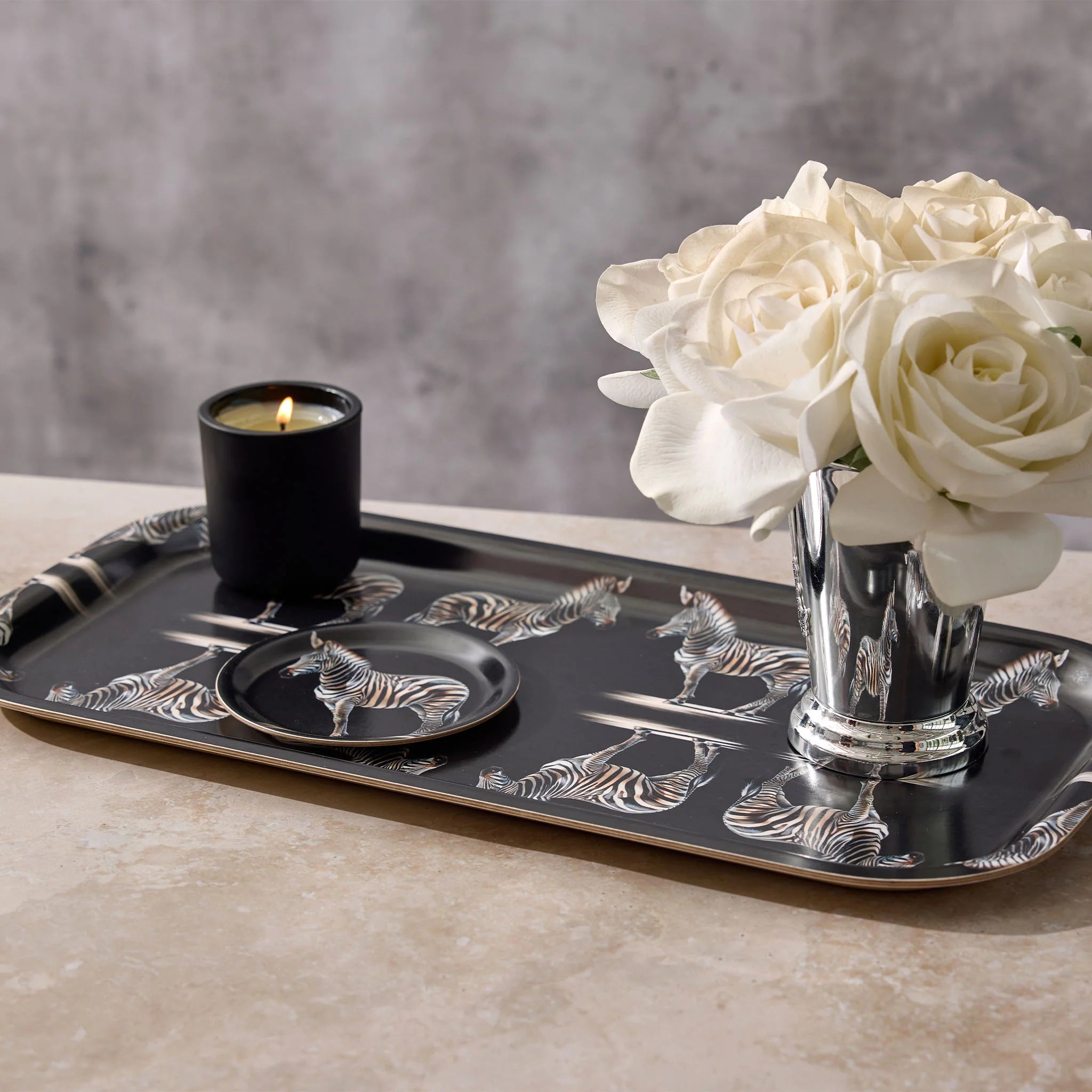 Our Zebra pattern features a bold, high-contrast design that instantly catches the eye. The striking black-and-white stripes make a statement, adding a contemporary edge to home and office spaces. Available in birchwood mini trays, small and large narrow trays, and a hand poured, Maure Signature candle for creative ways to decorate your space.