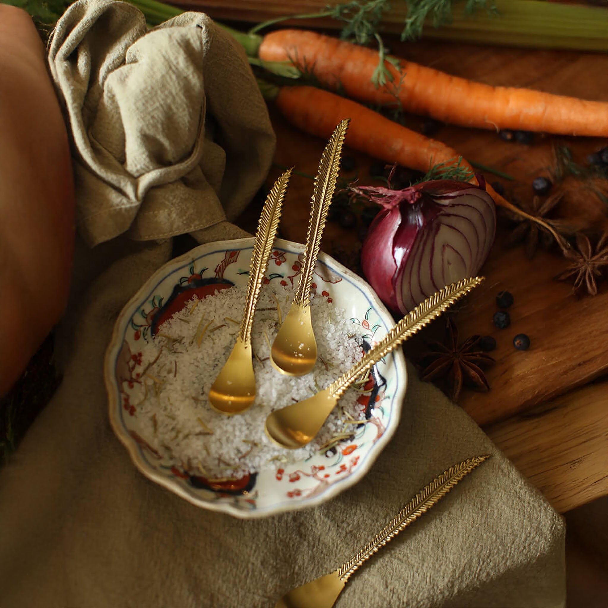 A delicate touch for your tea time ritual. The Stella Feather Tea Spoon is a handcrafted piece featuring a slender handle adorned with a feather motif, bringing a whimsical elegance to your table setting.