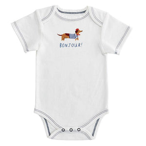 Say bonjour to everyday charm. This soft cotton onesie features a sweet French-inspired dog illustration and just the right amount of stretch for wiggle-friendly comfort. Finished with easy snap closures to make diaper changes a breeze.