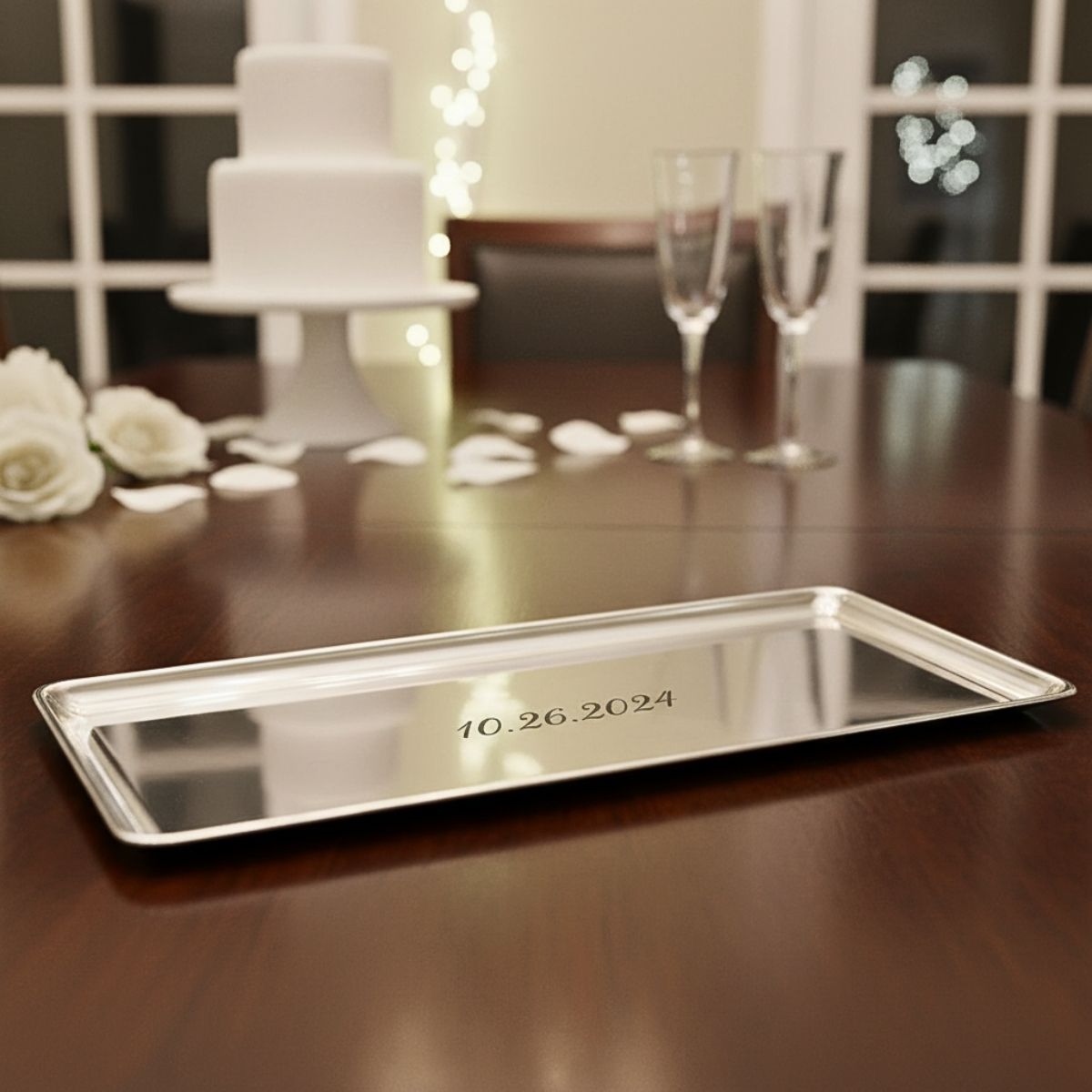 Timeless and beautifully tactile, this handcrafted, polished aluminum photo frame by Arthur Court is a meaningful keepsake for winter weddings. Its raised beaded edge adds subtle ornamentation, while the wide matte surface is designed for engraving, perfect for names, dates, or a sentiment meant to last. Give the thoughtful gift of preserving a cherished moment for someone special, a gift that feels both personal and enduring.