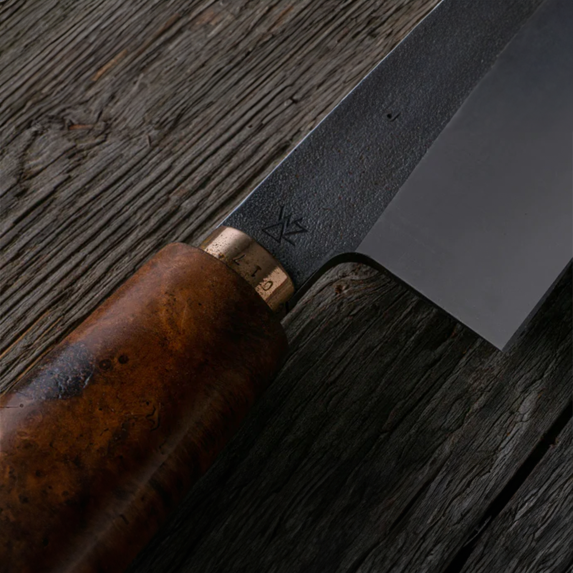 • Ergonomic and Beautiful Design: The hand-sculpted walnut burl handle not only provides a comfortable grip but also adds a touch of luxury to your kitchen.