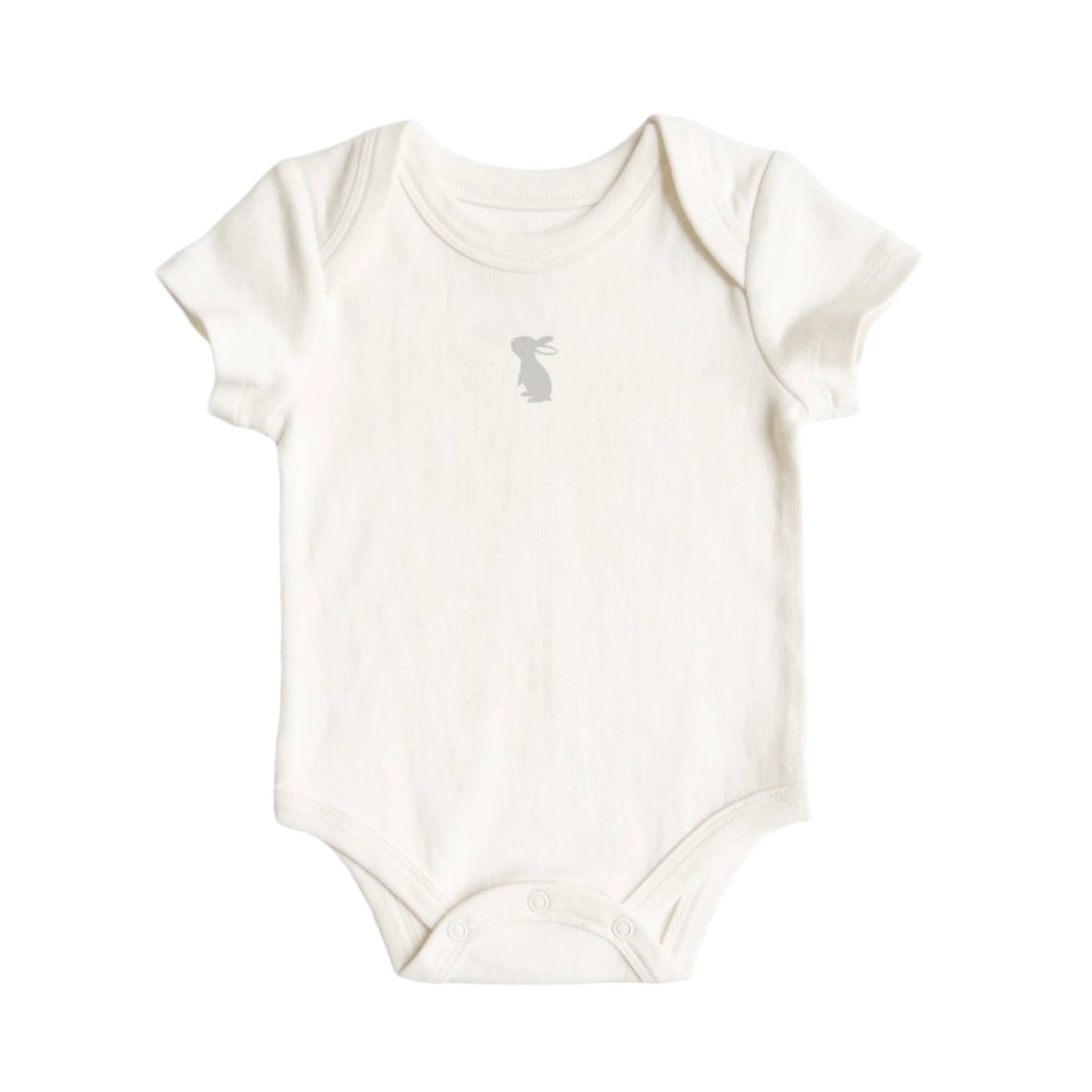 A soft staple with a sweet touch. This organic cotton onesie features a hand-illustrated bunny print and is designed with a lap shoulder neckline and three-snap closure for easy changes.