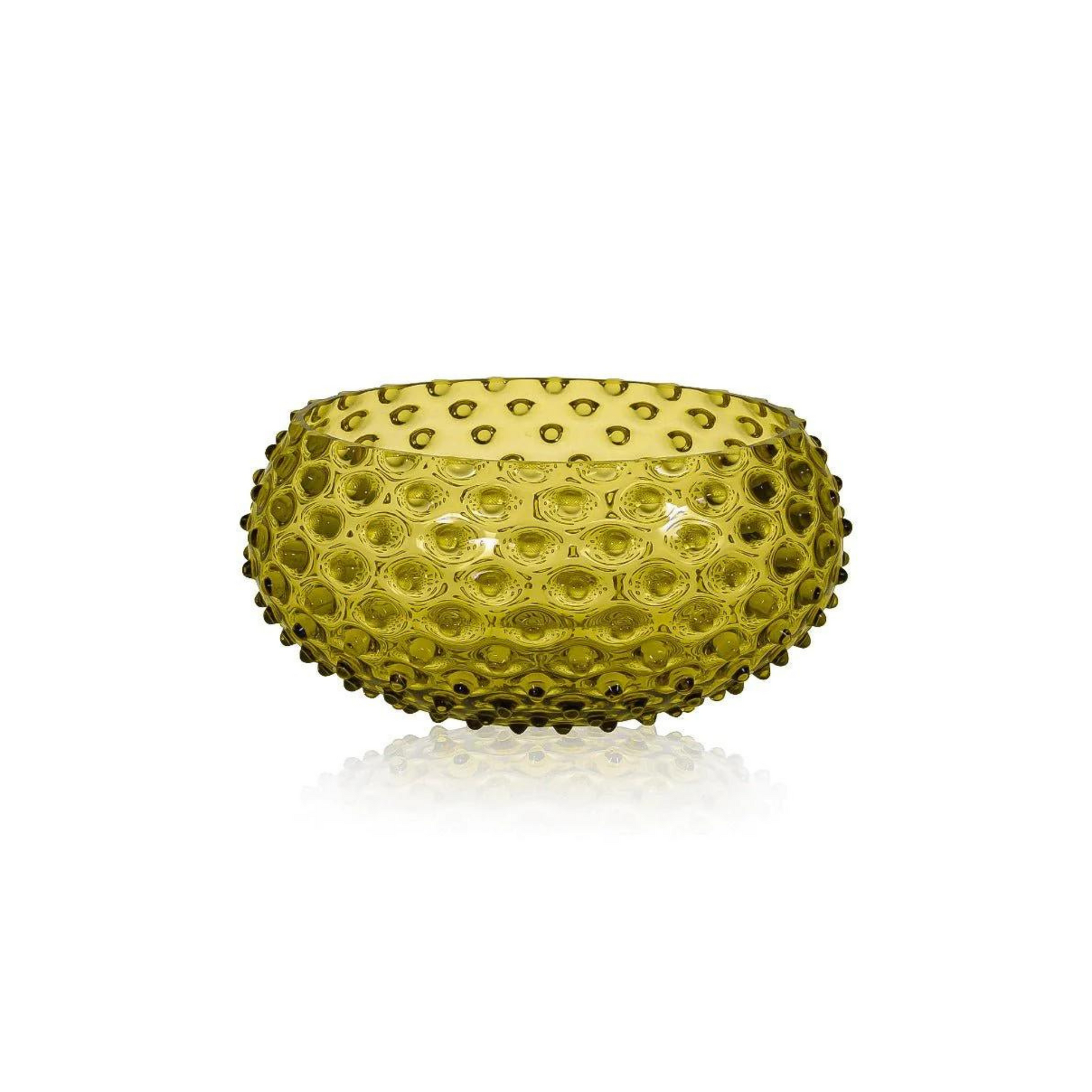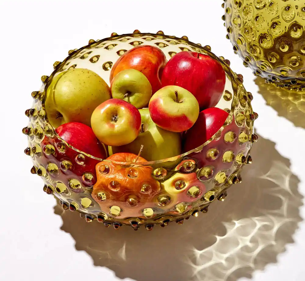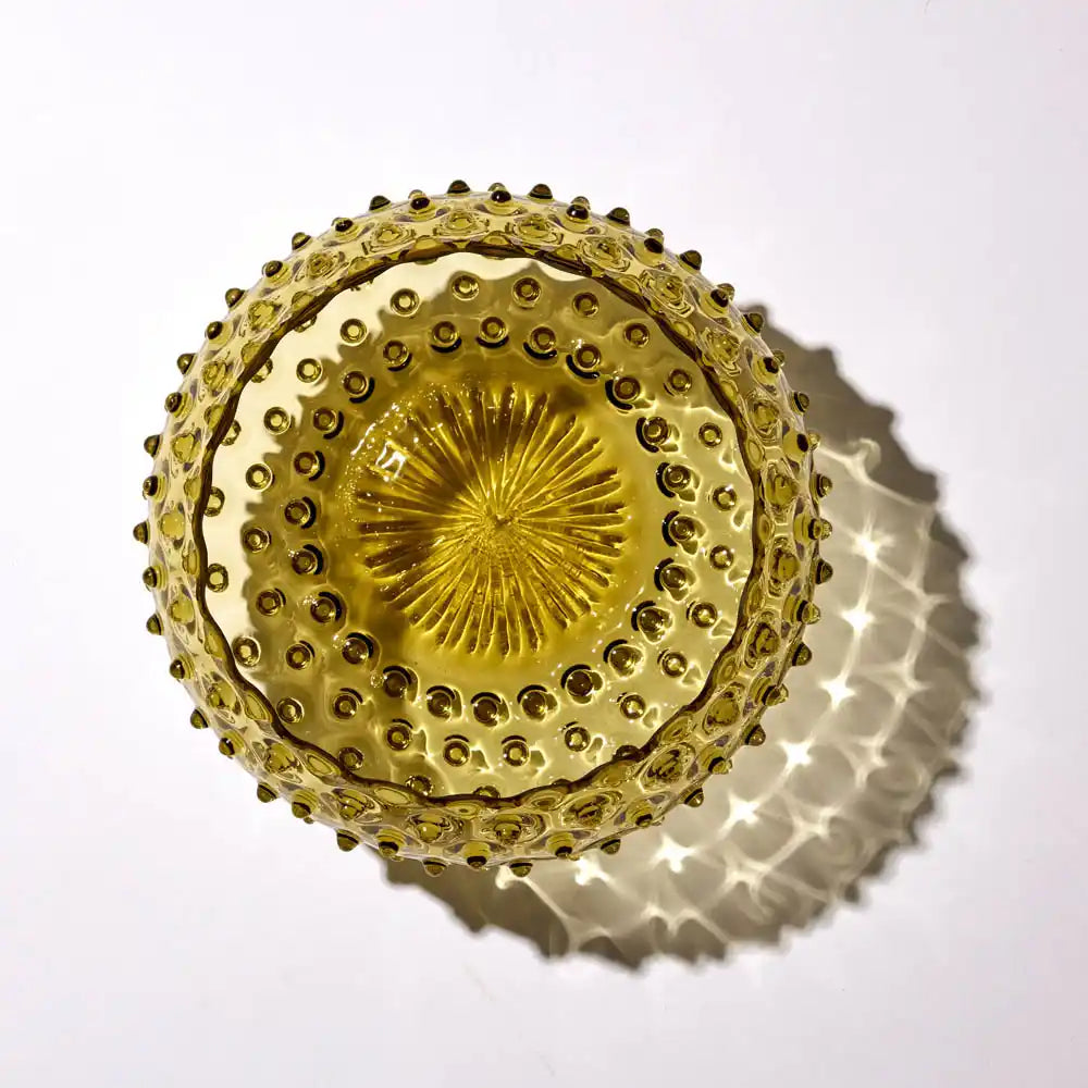 Bring warmth and sunlight to the table with this unique take on the modern salad bowl. With its high curving sides, the handcrafted hobnail design allows light to reflect through it beautifully, making it the perfect gift idea for that special birthday or anniversary.