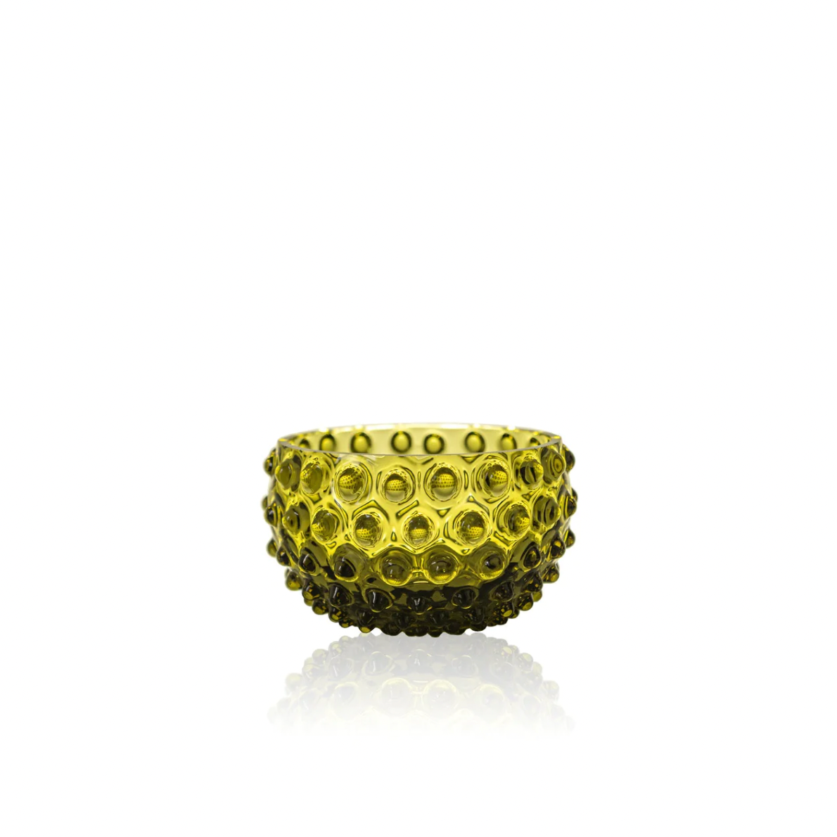 The unique shape and tint of the Bonsai Green Bowl make this a truly stunning centre piece with its highly curved sides and modern hobnail design. Its ability to capture and reflect light beautifully lends itself to creating stunning decor features or simply lighting up the dinner table with a touch of class.
