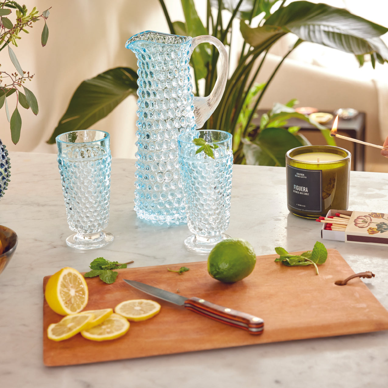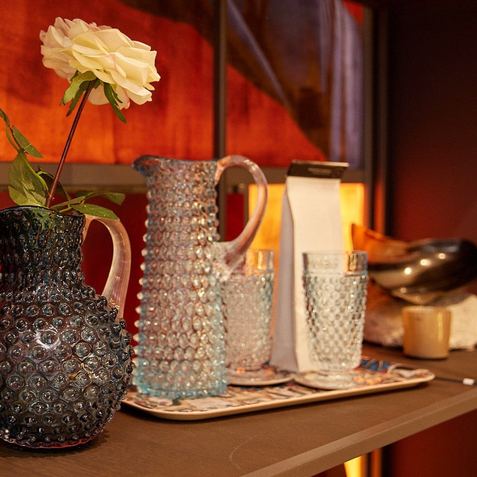 Be different from the crowd and take a unique twist on a timeless classic. Retro approach to the Bohemian glass tradition, our set of underlay azure goblets, handcrafted, has an avant-garde hobnail design. This is not only bound to bring a bit of charm to your dining experience but also serves a very practical purpose, as it is comfortable and reassuring to hold.Â