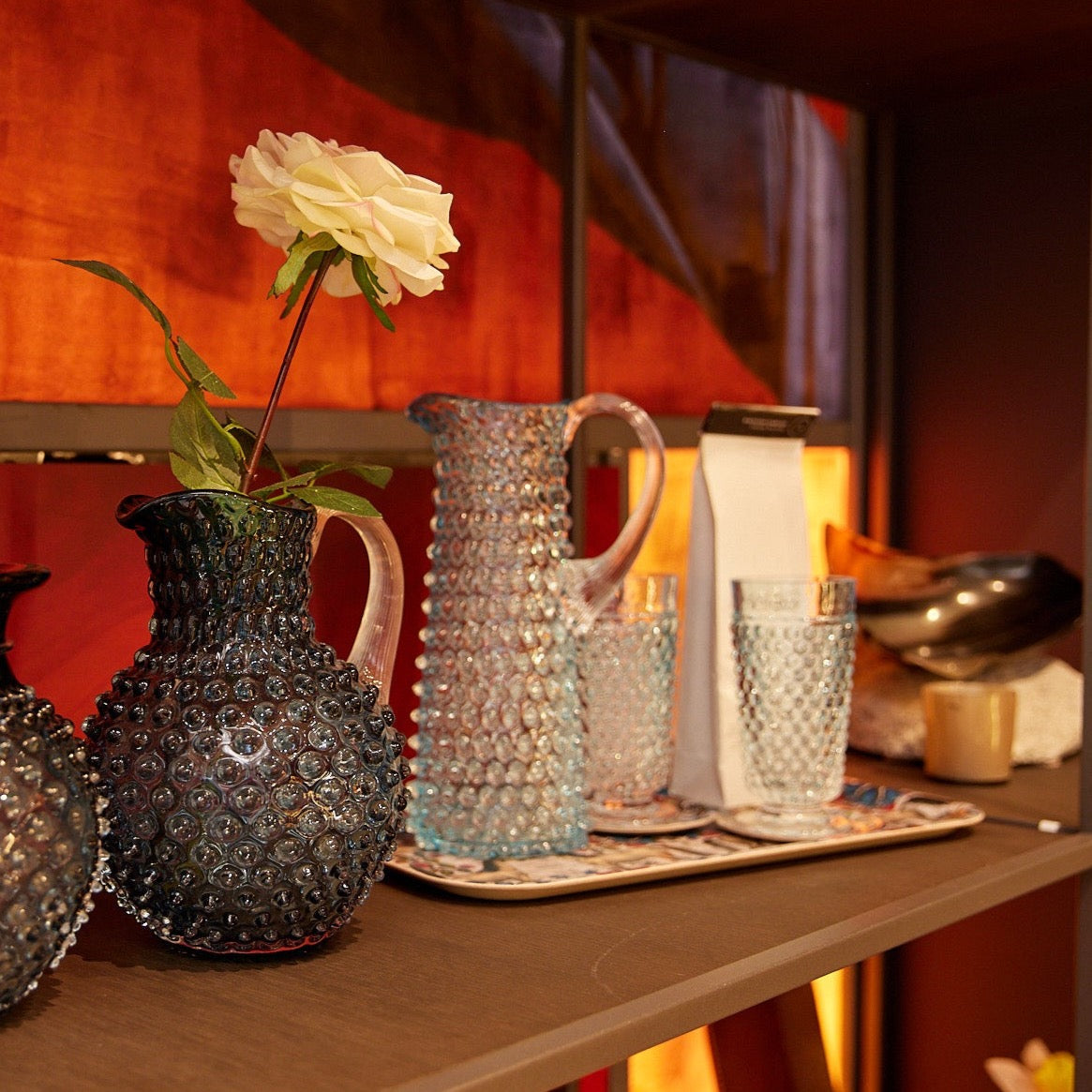 Underlay Azure is this colour variation in our collection of all-purpose crystal bobble glass jugs, we aim to add a sense of calmness, and relaxation to every glass you pour as if you were to lie on your back and look into a midnight cloudless sky.