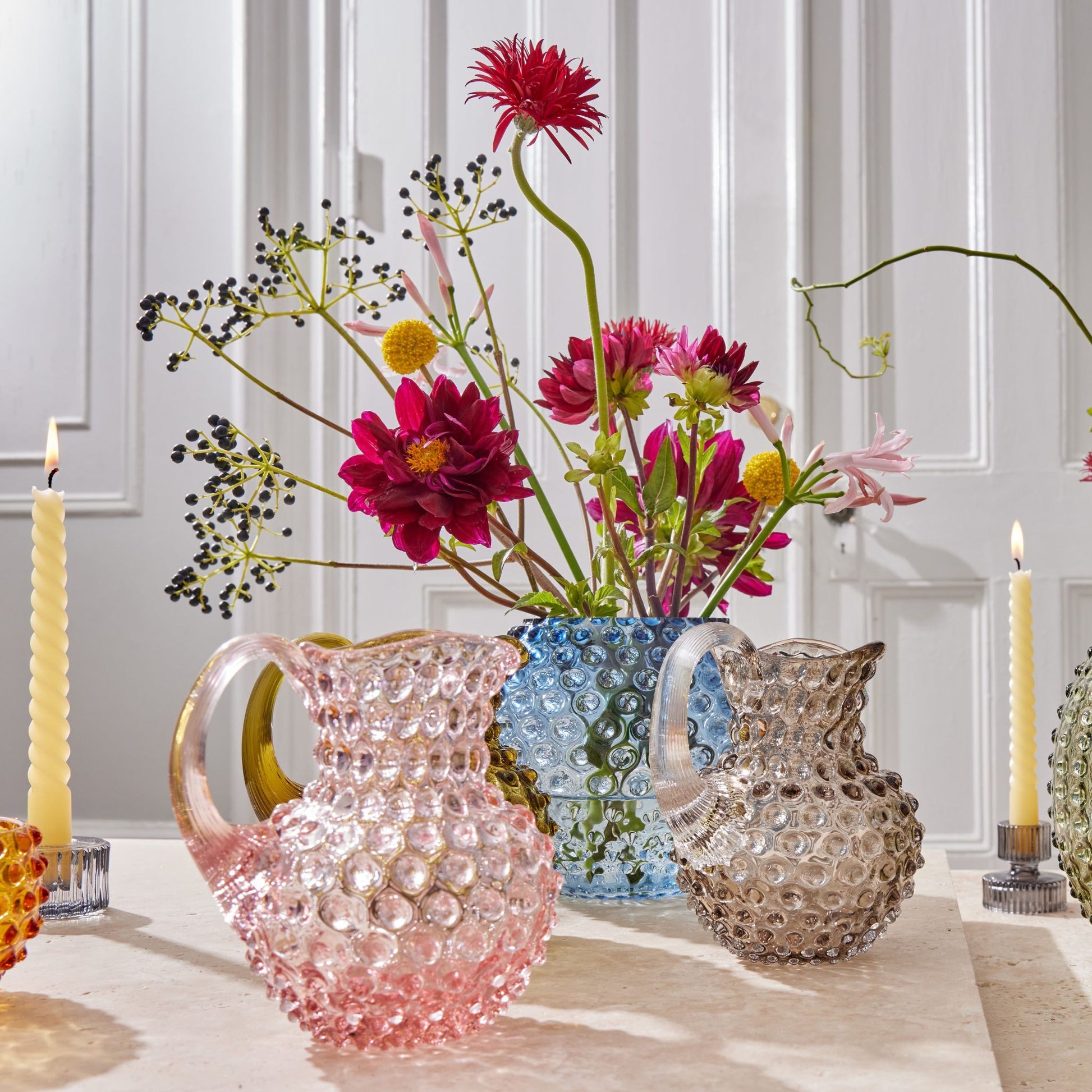 Underlay blue smoke is a very trendy colour for this winter. A statement piece of glassware, this vase reflects the light in a beautiful way. Its unorthodox shape and bobbles make the vase a perfect companion for fresh flowers with short stems cut straight from your garden. It can be the ideal gift for your father on their special day or for friend’s weddings and birthdays.